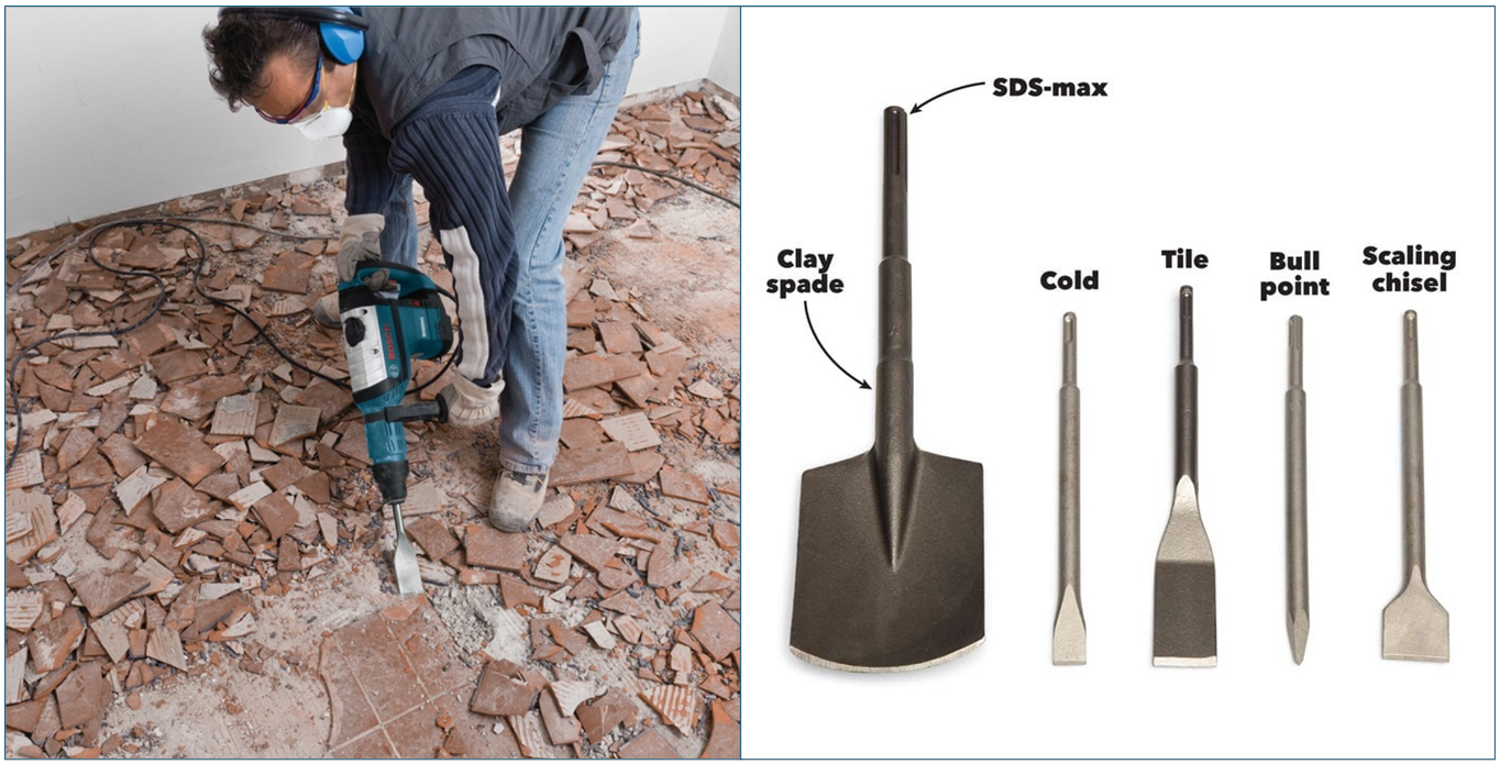 - SDS-Plus 或 SDS-Max 夾頭,使鑽頭更牢固,安裝與更換更快速。