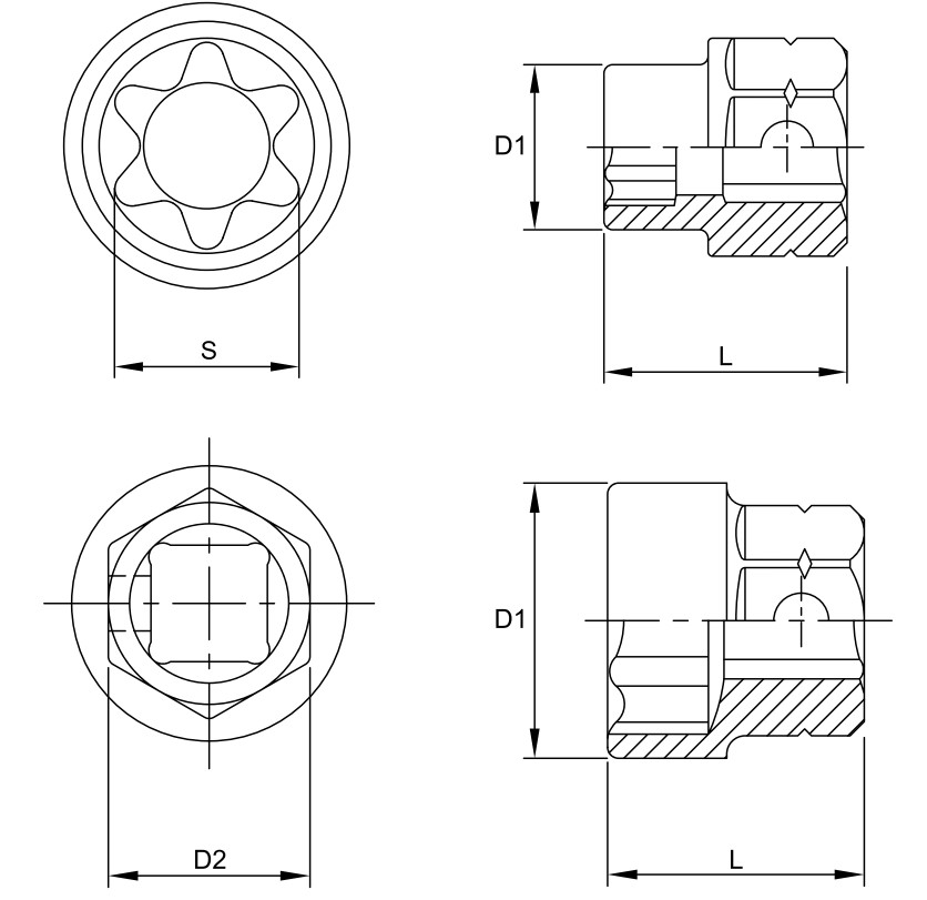 Hex Shape Stubby Star Impact Socket 外六角星形氣動套筒