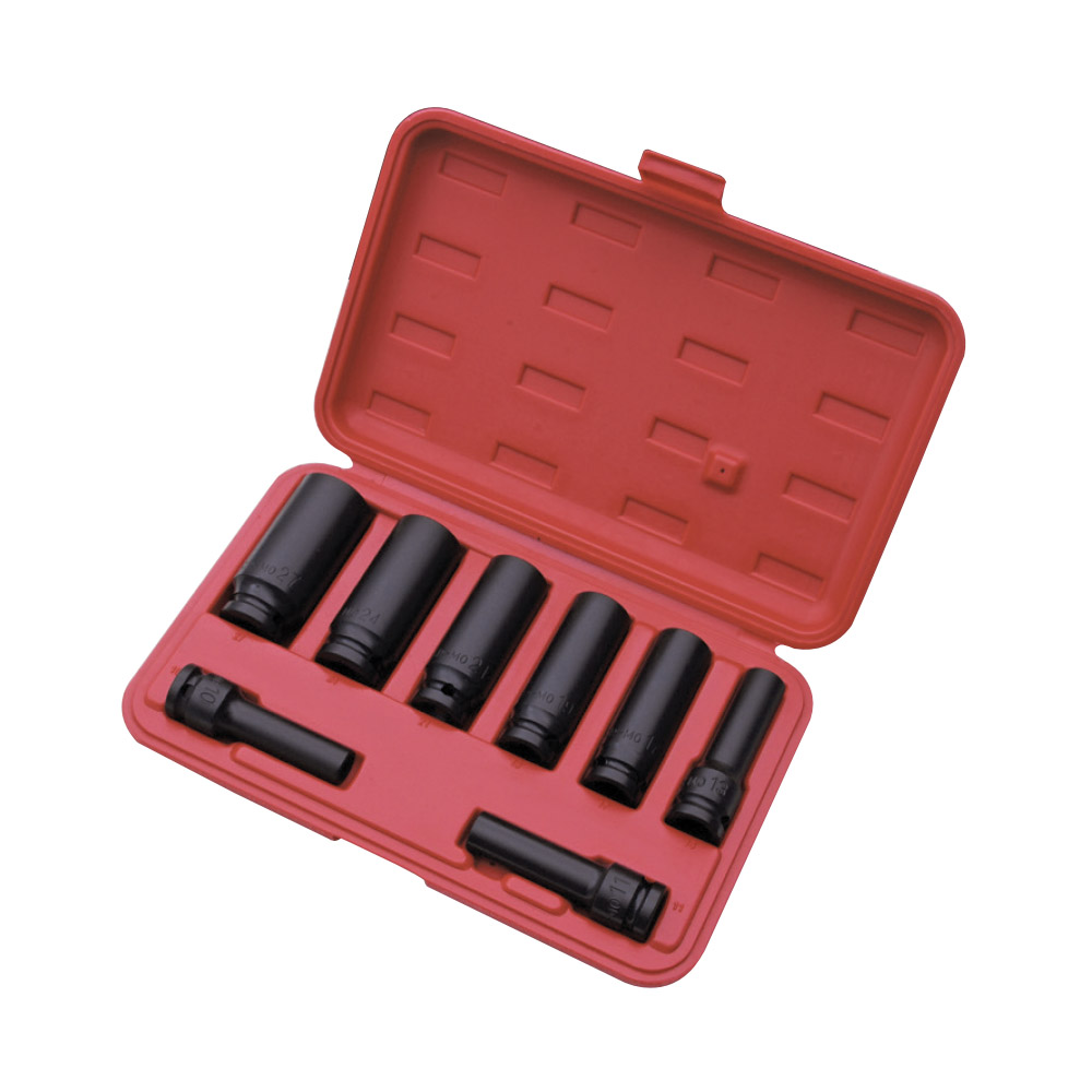8PC 1/2"DR. 6-POINT IMPACT SOCKET SET 1/2" 6角氣動長套筒8件組