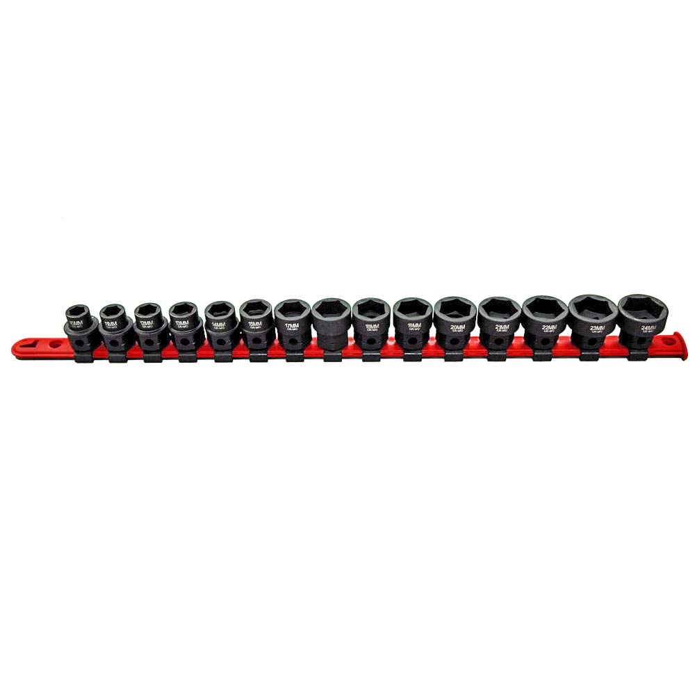 15 Piece 1/2" Drive 10-24mm Stubby Impact Socket Set, Low Profile, Hex Shank 1/2" 超短氣動套筒15件組 (公制) 六角外铣